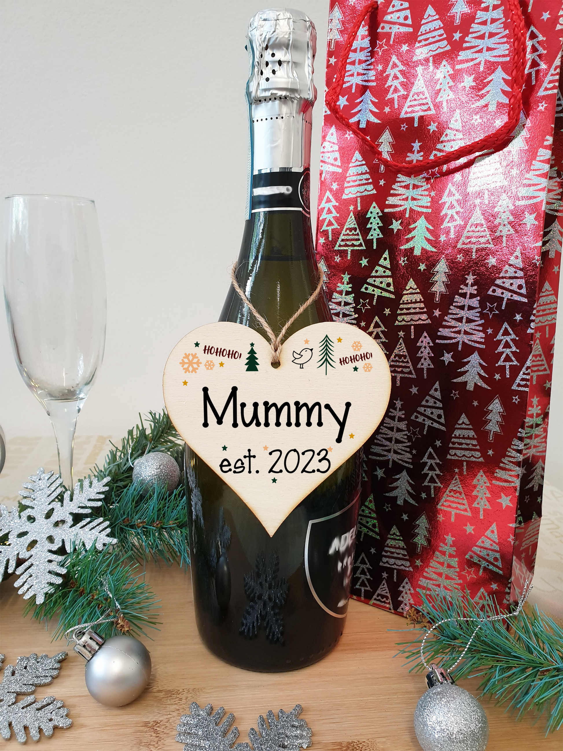 � Packaged in a festive transparent sleeve � perfect to give as a gift � Size: Approx. 9 x 9 cm � Includes a length of hessian twine for hanging � Made from high quality sustainable 3mm Plywood (PEFC Certified)Wording on plaque decoration: Mummy Est. 2022 These beautiful handcrafted heart shaped wooden Christmas plaques make a great little gift for someone special. This exclusive festive design will add style to any gift or tree, and the shabby chic effect is on trend for this year. Ideal for use as tags on presents and gift bags. Hang around the neck of a bottle of fizz at the Christmas dinner table. Perfect as a bauble or sign to hang on your Christmas tree for a unique and personal way to celebrate Christmas. Use as place settings, wrapped around the stem of a wine glass. Or wish someone a very Merry Christmas, just because! **Please note colours may vary on product due to materials used and hand-made nature of the product.