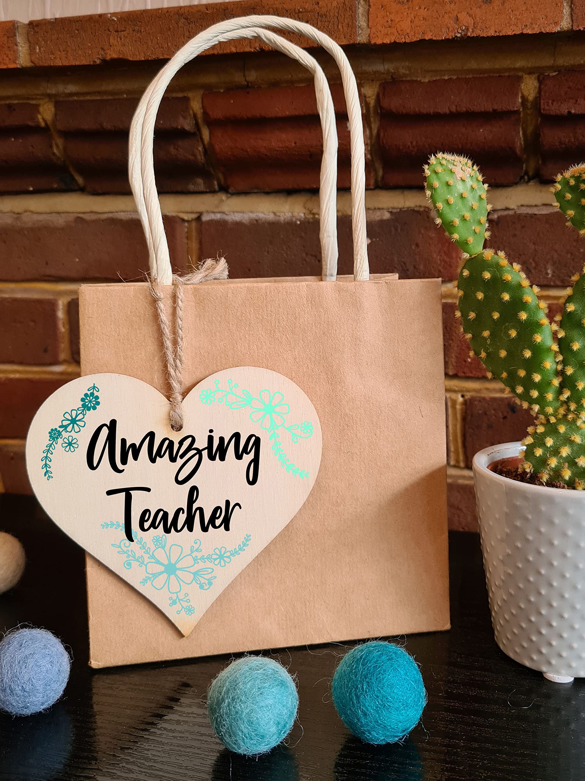 Handmade Wooden Hanging Heart Plaque Gift for a Amazing Teacher Thank You Keepsake