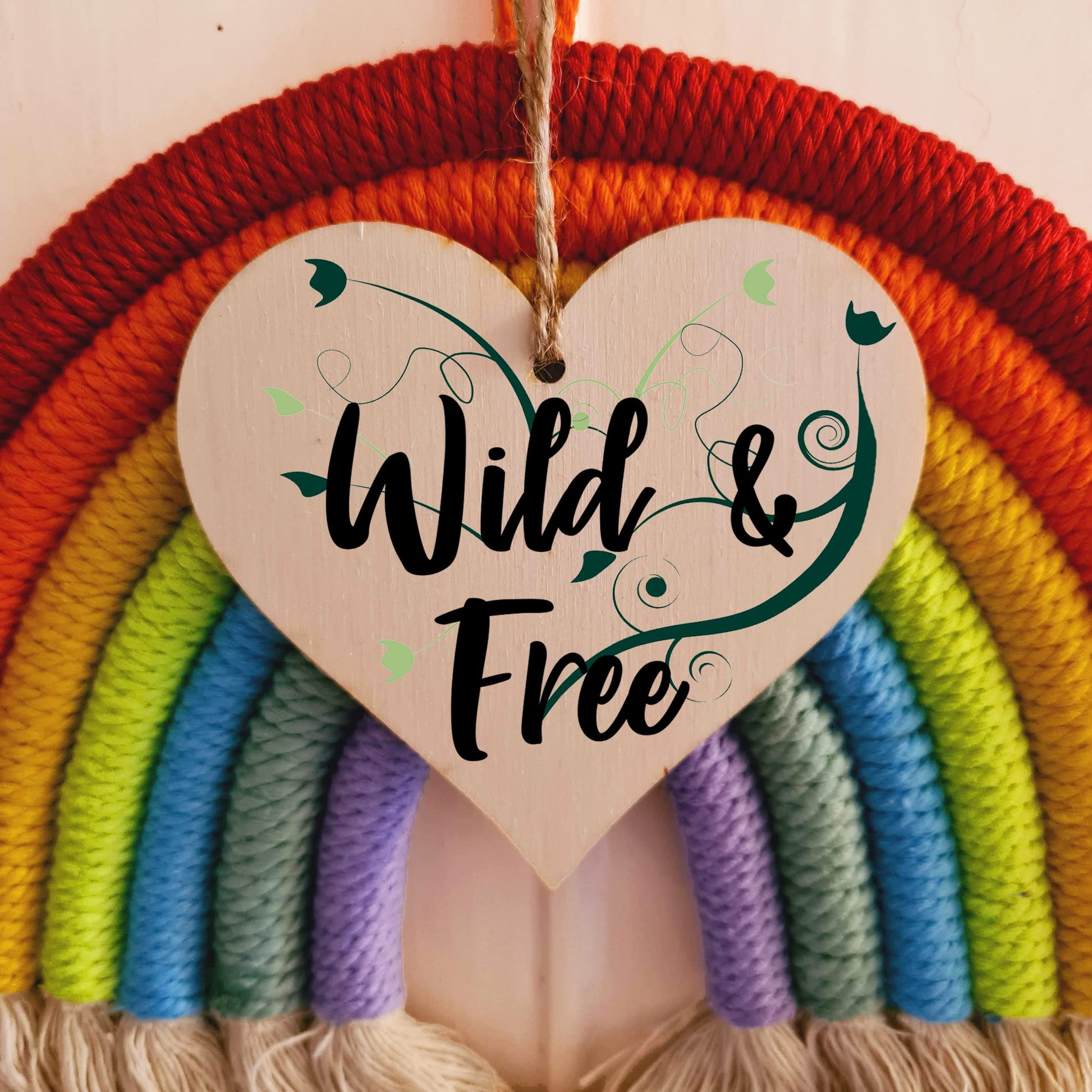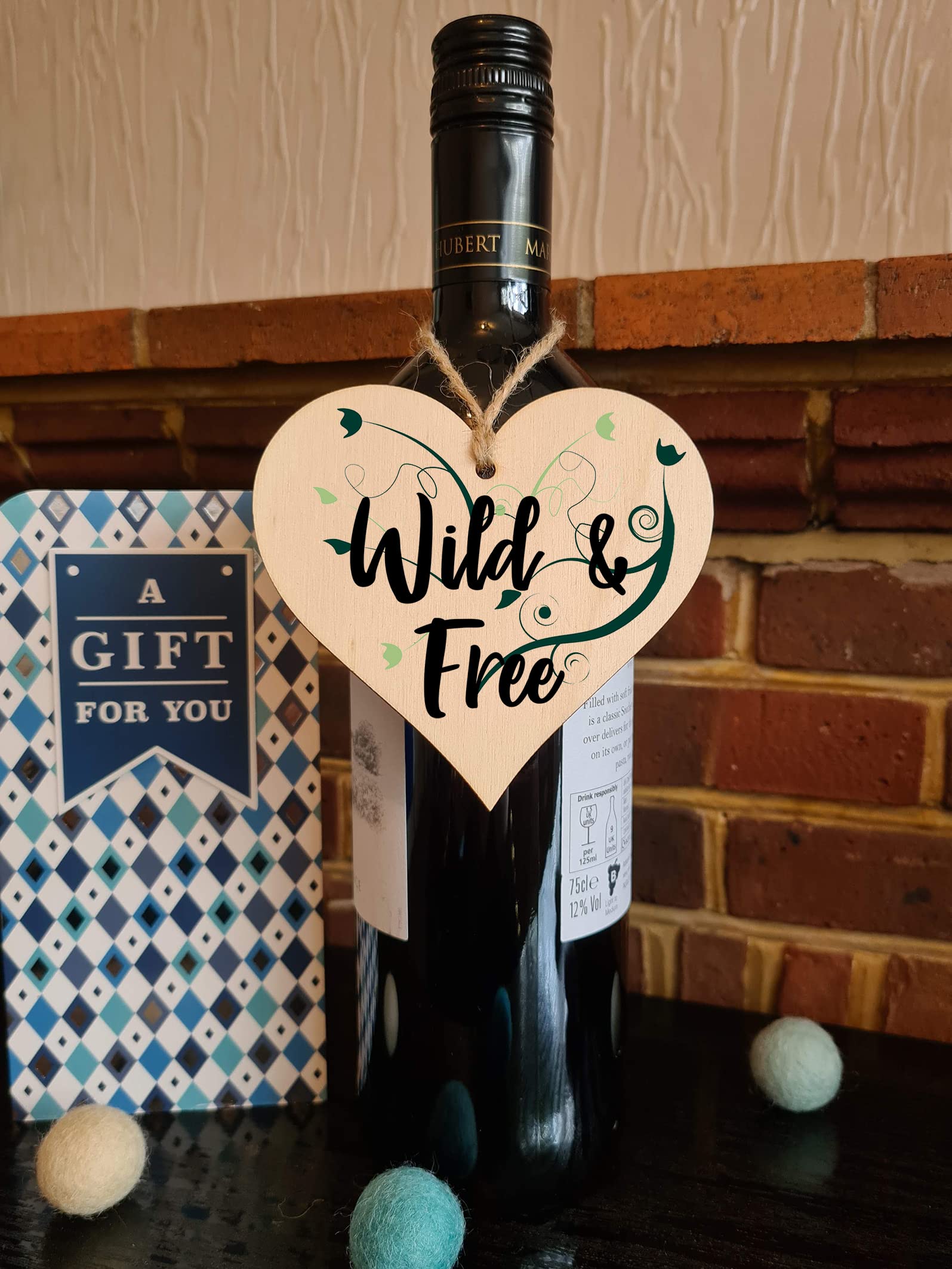 Beautiful handmade wooden heart shaped plaque. Shabby chic style hanging sign, with a unique printed design. Ideal gift for someone special. Made from high quality sustainable 3mm Plywood (Programme for the Endorsement of Forest Certification). Can be used as a hanging decoration, or even as a gift tag. Tag Reads Wild & Free