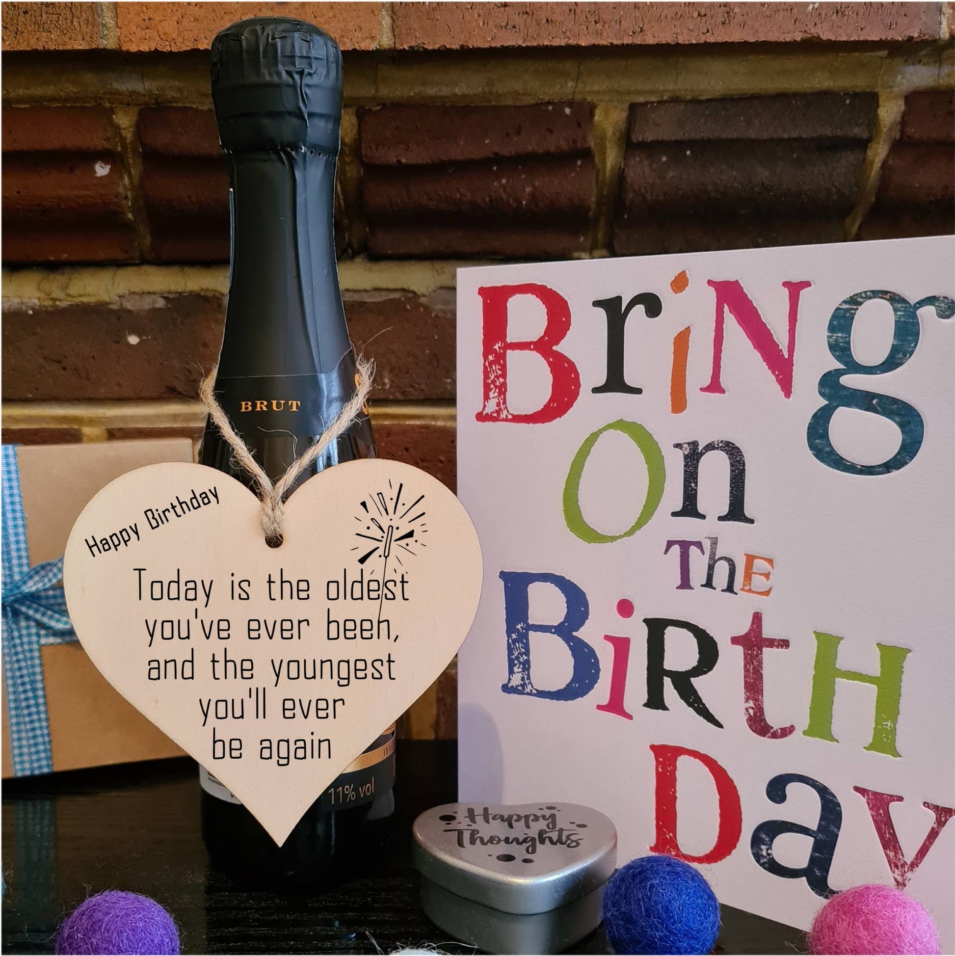 Beautiful handmade wooden heart shaped plaque. Shabby chic style hanging sign, with a unique printed design. Ideal gift for someone special. Made from high quality sustainable 3mm Plywood (Programme for the Endorsement of Forest Certification). Can be used as a hanging decoration, or even as a gift tag. Tag Reads Today is the oldest you've ever been, and the youngest you'll ever be again