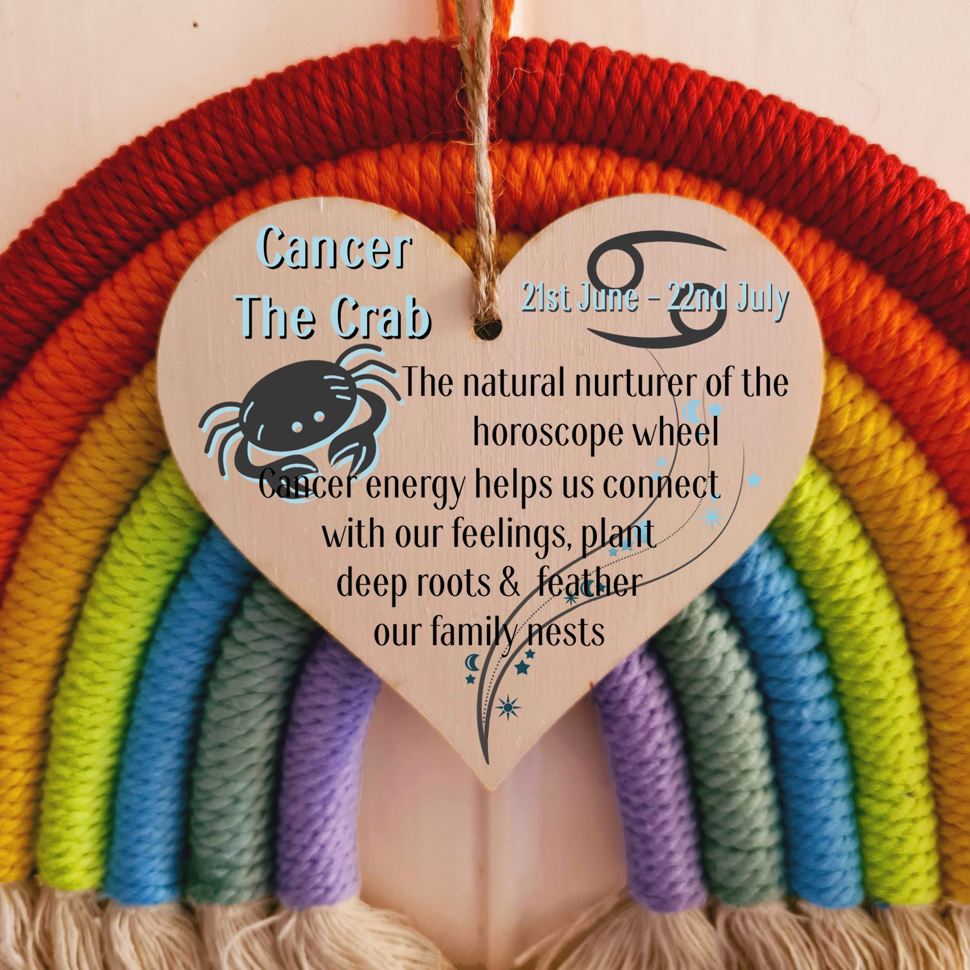 Handmade Wooden Hanging Heart Plaque Gift Signs of the Zodiac Cancer Astrological Star Sign Keepsake Card Alternative