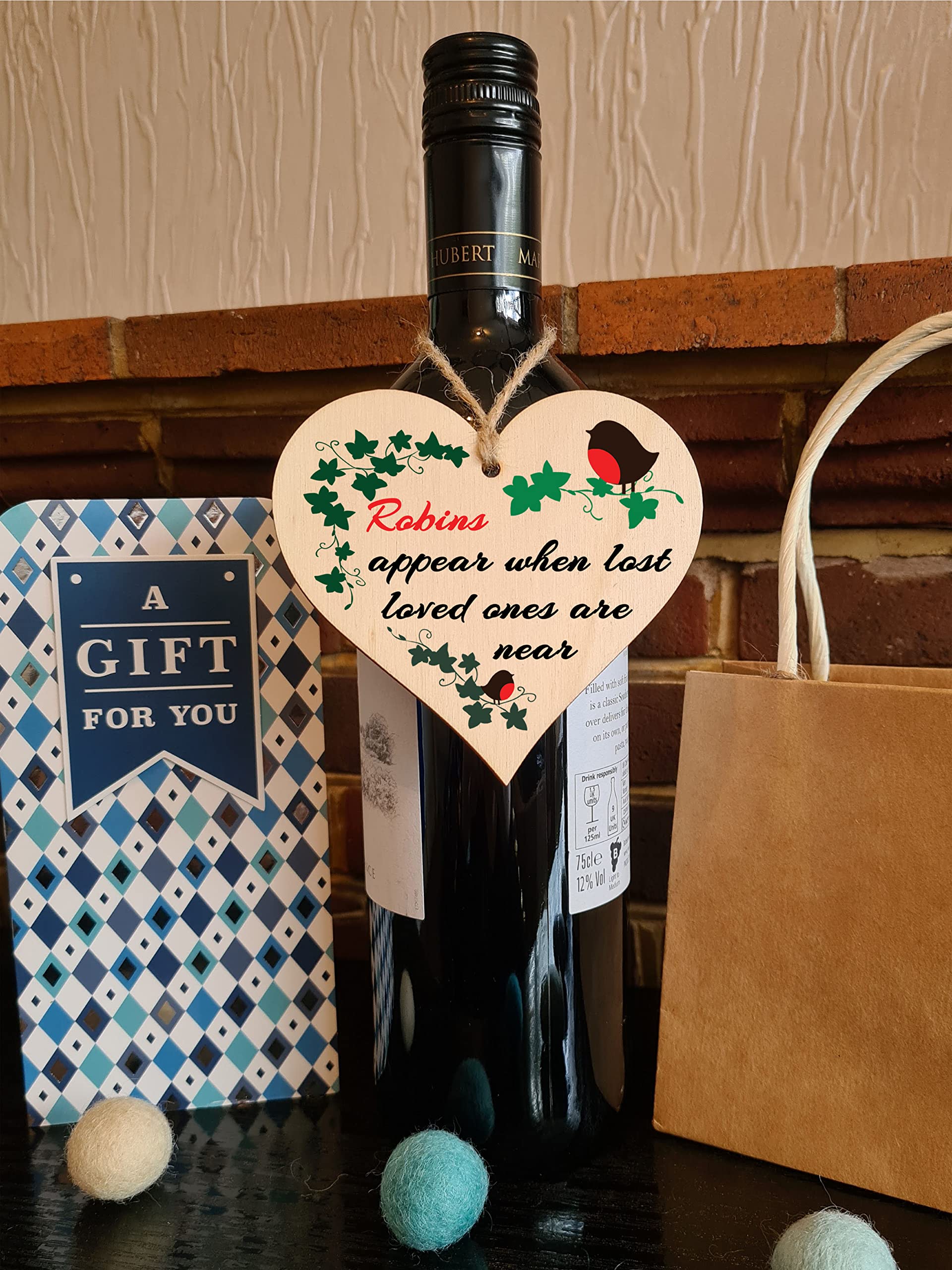 Beautiful handmade wooden heart shaped plaque. Shabby chic style hanging sign, with a unique printed design. Ideal gift for someone special. Made from high quality sustainable 3mm Plywood (Programme for the Endorsement of Forest Certification). Can be used as a hanging decoration, or even as a gift tag. Tag Reads Robins appear when lost loved ones are near.