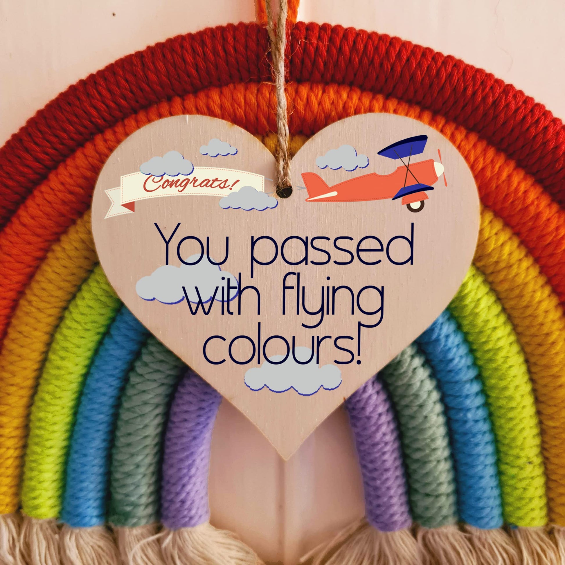 Beautiful handmade wooden heart shaped plaque. Shabby chic style hanging sign, with a unique printed design. Ideal gift for someone special. Made from high quality sustainable 3mm Plywood (Programme for the Endorsement of Forest Certification). Can be used as a hanging decoration, or even as a gift tag. Tag Reads You passed with flying colours!