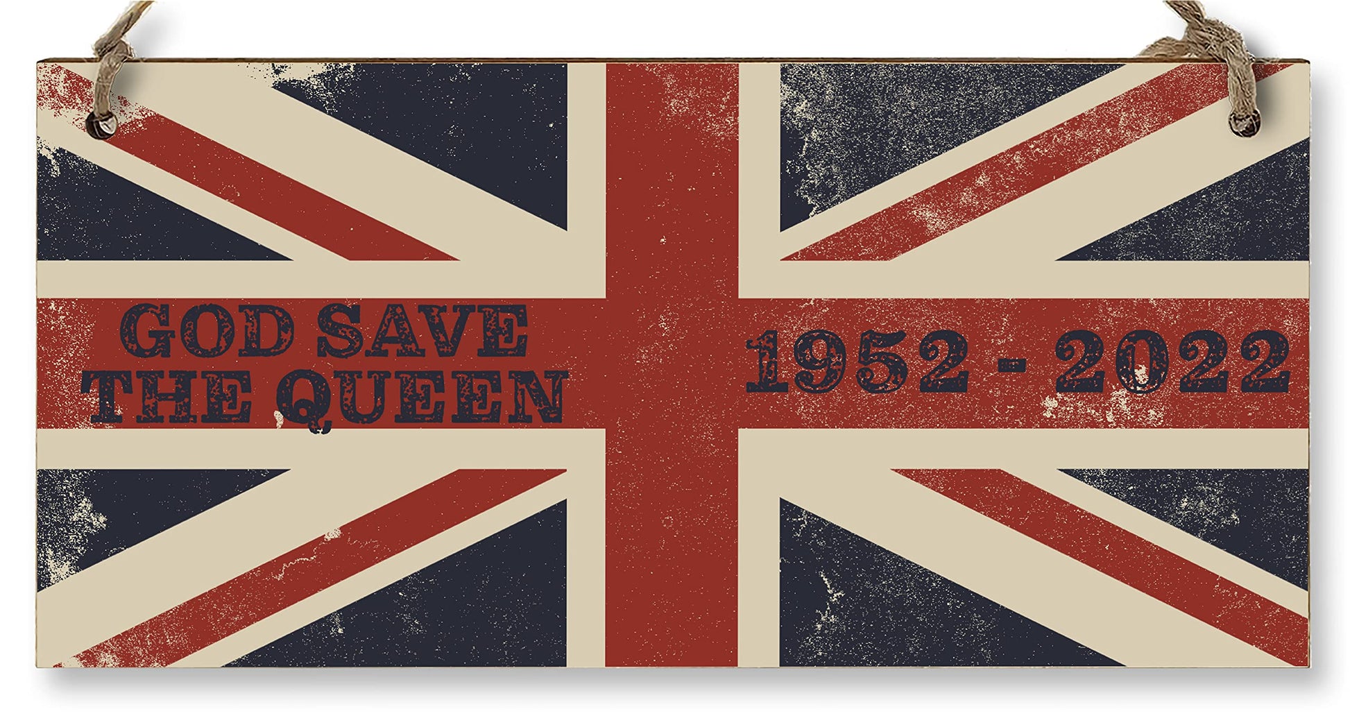 Handmade Wooden Hanging Wall Plaque Celebrate 70 Years Queen's Platinum Jubilee 2022 God Save The Queen Decorative Memorabilia Street Party