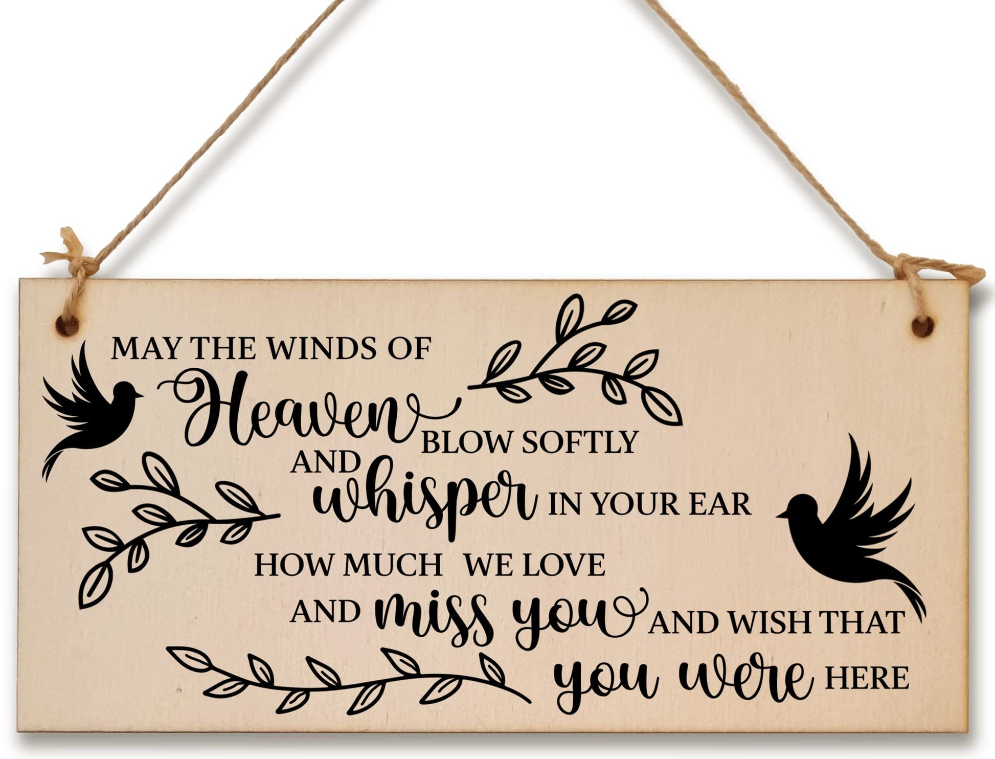 May the winds of Heaven Blow Sympathy Memory Handmade Wooden Hanging Wall Plaque Miss You Sentimental Gift