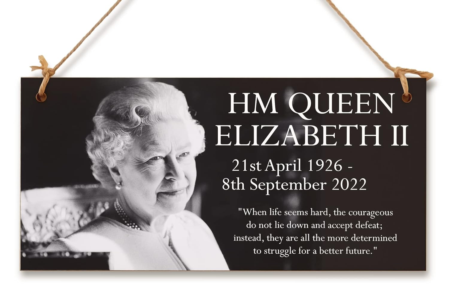 � {Commemorate HM Queen Elizabeth II} A unique and poignant keepsake to our wonderful queen. Celebrate the life of Her Majesty Queen Elizabeth with a wonderful piece of memorabilia. Can be hung throughout the home, in memory of our beloved monarch. � {Beautiful Decoration} A beautiful photo of Queen Elizabeth in commemoration of her passing on 8th September 2022. A long life, filled with good deeds and lasting impact on all our lives. � {Materials & Size} Actual Size: 200mm (W) x 100mm (L). We use sustainably sourced 6mm Plywood (PEFC Certified) from a family run forestry. Every plaque is packaged in a transparent sleeve, ready to gift, and with a length of rustic hessian jute string for hanging. � {Handmade in the UK} The plaque is handcrafted in Birmingham, UK, by a small team dedicated to creating high quality, affordable decorations. Every order is cut, printed and packaged with care and attention to ensure the product reaches you in perfect condition.A decorative rectangular wooden hanging wall plaque, specially designed to commemorate the passing of Her Majesty Queen Elizabeth. Wording on the plaque: HM Queen Elizabeth II 21st April 1926 - 8th September 2022 "When life seems hard, the courageous do not lie down and accept defeat; instead, they are all the more determined to struggle for a better future." Celebrate the life of our wonderful Queen with this beautiful keepsake. An ideal piece of memorabilia after the passing of Her Majesty Queen Elizabeth II. The plaque is made from high quality, sustainably sourced 6mm Plywood (PEFC Certified). The image is UV-printed in full colour, directly onto the wooden plaque, to ensure a high quality, bold and durable finish. It is packaged in a transparent sleeve, making it ideal to give as a gift, and comes with a small length of shabby, rustic hessian twine to hang up. This creative piece of wall art will add that little something extra to your space. From the kitchen to the living room, in the bathroom or the study, showcase your personality and hobbies in a fun and whimsical display. If not as a treat for you, then these are perfect to give as a gift to HHfriends, family, neighbours, and colleagues. ***Please note, because these are made from untreated wood, the sign is designed for indoor use and should only be displayed outside for short periods during dry weather. Prolonged exposure to outdoor elements such as rain, water, frost, heat and UVs will damage and fade your sign.***