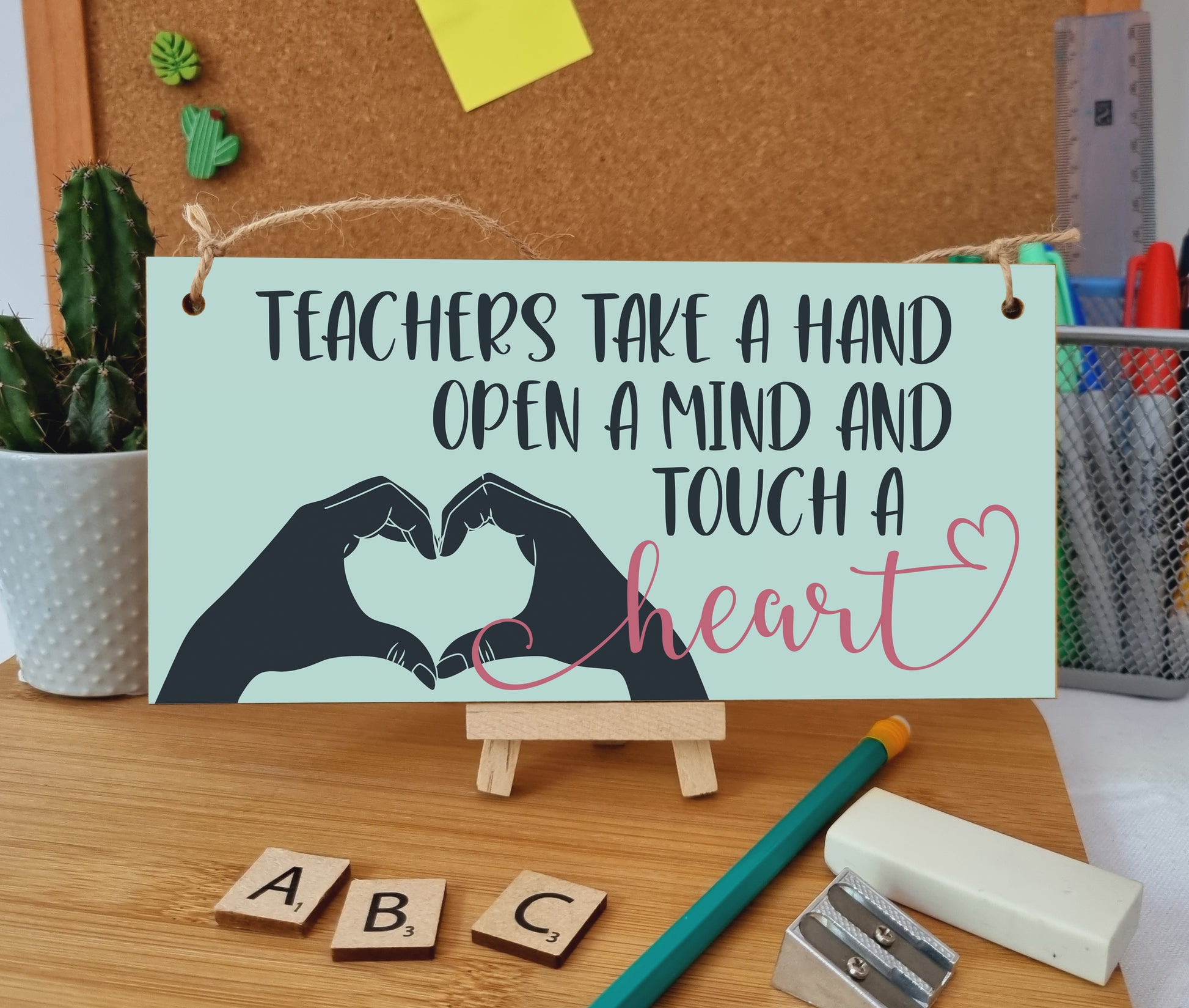 Teachers Take a Hand Open a Mind Touch a Heart Handmade Wooden Hanging Wall Plaque Gift Teacher Teaching Assistant End of Term