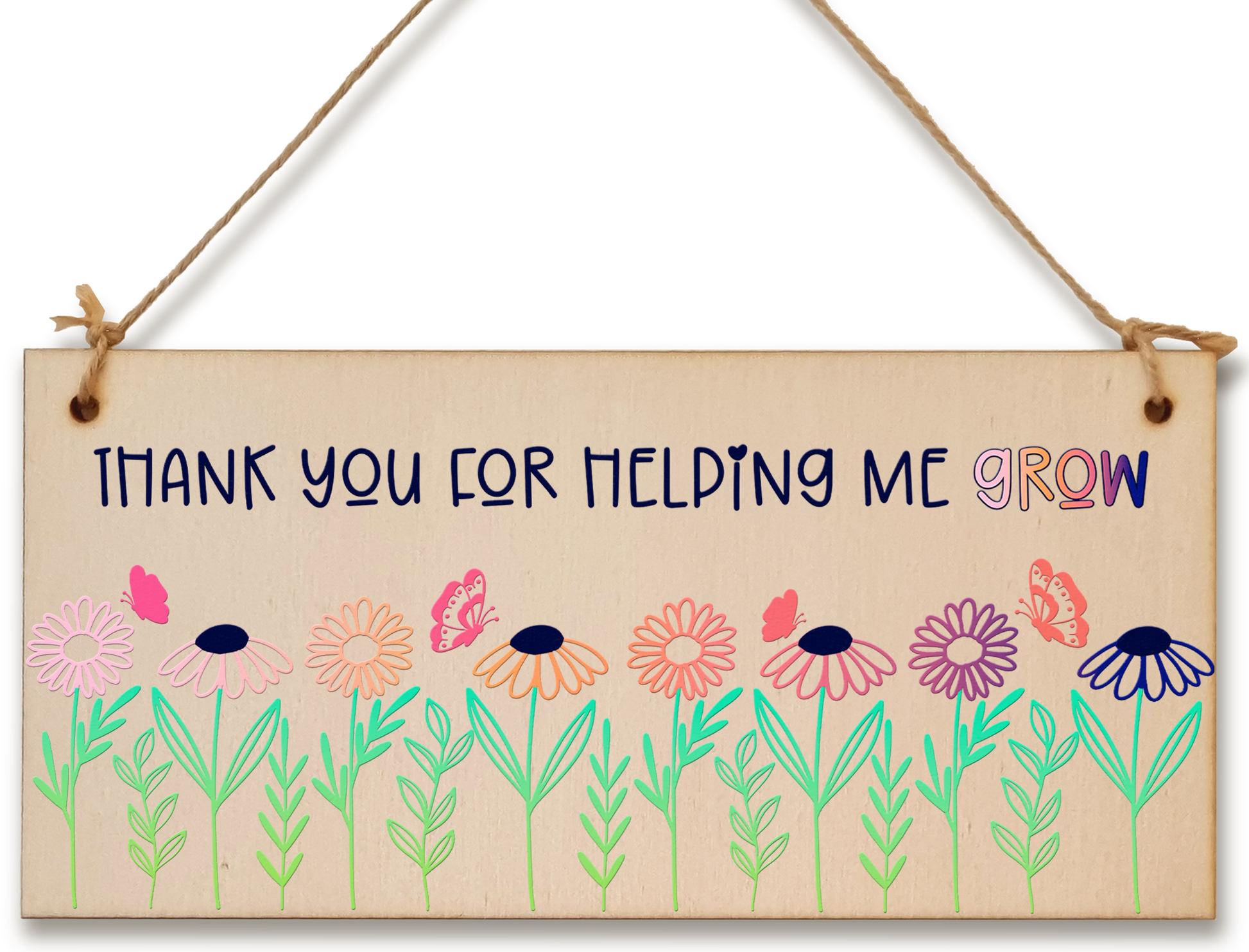 Thank You For Helping Me Grow Handmade Wooden Hanging Wall Plaque Gift Decoration Teacher Teaching Assistant End of Term
